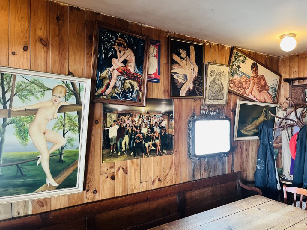 Die Stimmen der Gäste füllen den Raum. Französisch klingt wie ein Lied voller kleiner Wortspitzen. Ein Stimmengewirr, das sich mit dem Knacken des Feuers und dem Klirren der Gläser vermischt. Jeder hilft am Ende beim Abräumen, Teller und Krüge werden liebevoll an der Theke abgestellt. Es wirkt selbstverständlich – so wie alles an diesem Ort selbstverständlich und natürlich wirkt.