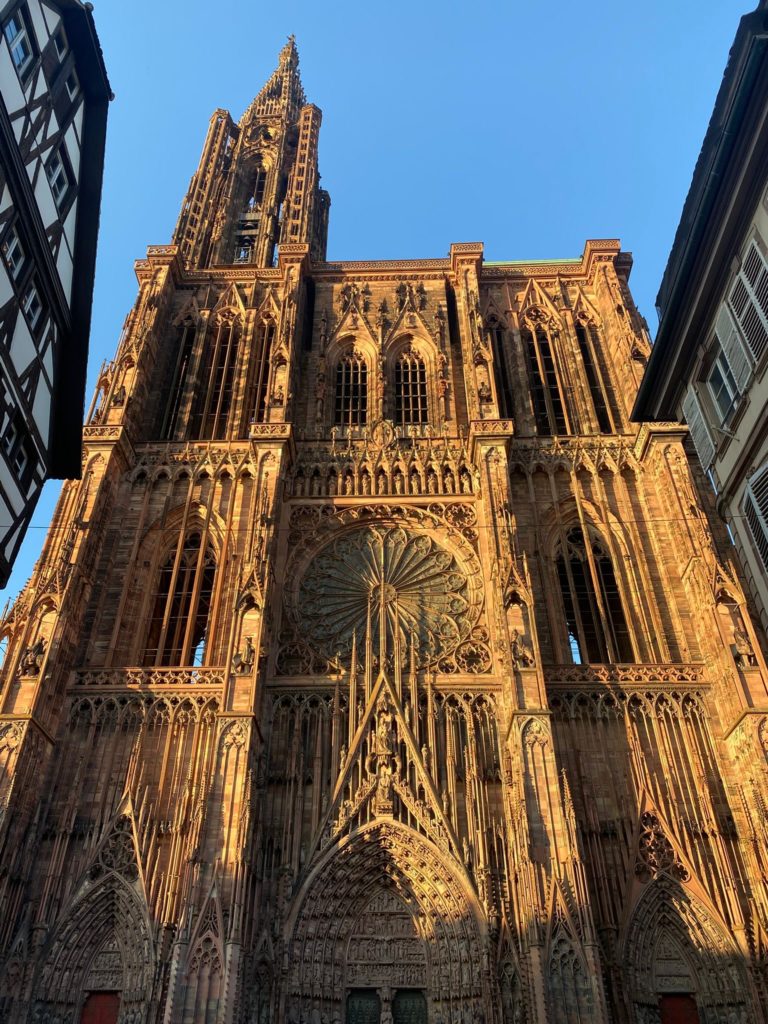 Danach geht es in die Altstadt. Und hier beginnt das Staunen, und das Stirnrunzeln. Straßburg ist schön, ohne Zweifel. Fachwerk, Kopfsteinpflaster, Blumenbalkone. Aber auch hier wurde in Beton gegossen, was besser aus Lehm geblieben wäre. Das Münster, ehrfurchtgebietend selbst unter Gerüsten, wurde 1439 nach über vierhundert Jahren Bauzeit fertiggestellt und war zu seiner Zeit das höchste Gebäude der Welt. Seine steinerne Spitze ragt wie ein mahnender Finger in den Himmel, ein stilles Zeugnis mittelalterlicher Entschlossenheit. Aber dazwischen, Bausünden in Sichtweite, lieblos aufgestockte Häuser, Glasfassaden mit Seelen im Energiesparmodus. Die Gassen der zweiten Reihe sind eng, charmant, und touristisch überfordert. Die Auswahl an Restaurants? Riesig. Michelin bis Mamas Gemüsegarten, alles ist dabei.
