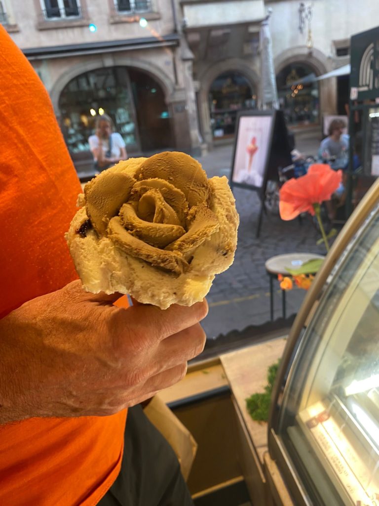 Am Abend, Völlerei trifft Verzückung. Flammkuchen, Munsterkäse, Crémant. Und während ich genüsslich kaue, fällt mein Blick auf die Straßenschilder, Sephora, McDonald’s, Five Guys, Benetton, Levi’s. Es ist wie ein Déjà-vu aus Frankfurt, Lyon oder Kassel. Ein bisschen Alltag unter Puderzucker. Ich brauch kurz ne Auszeit, sage ich und setze mich auf die Bank. Ich auch, sagt Martina. Aber ich muss erst noch schauen, ob es hier Wildbeeren gibt. Frühmenschliche Instinkte.